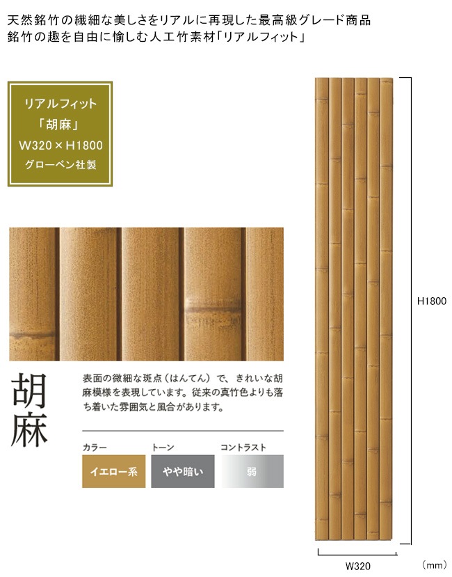 【人工竹素材】リアルフィット「胡麻」(パネル)サイズ:W320×H1800×D10mm、入り数:片面1パネル、品番:A30RF63...