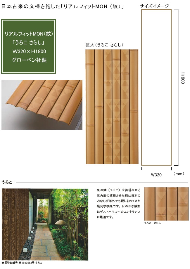 【人工竹素材】リアルフィットMON(紋)「うろこ さらし」(パネル)サイズ:W320×H1800×D10mm、入り数:片面1パネル...