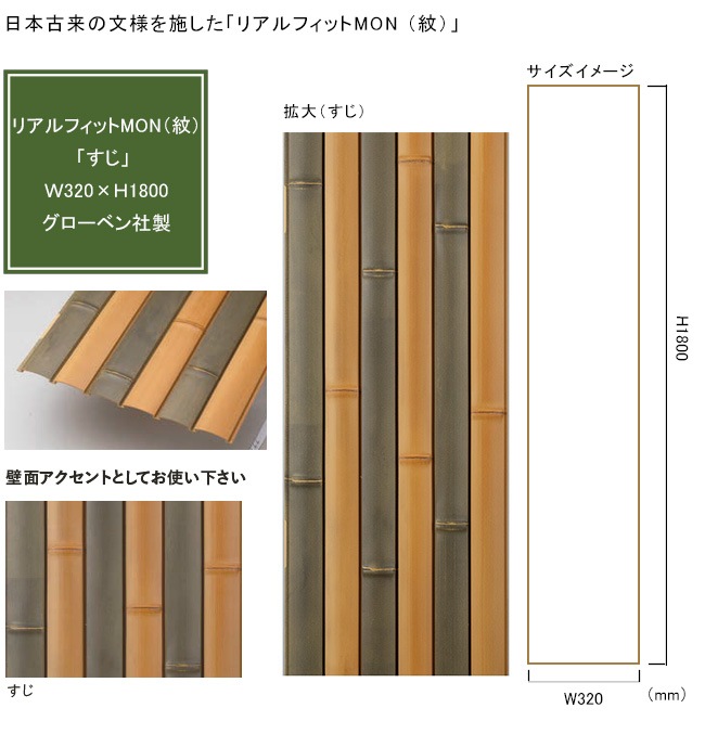 【人工竹素材】リアルフィットMON(紋)「すじ」(パネル)サイズ:W320×H1800×D10mm、入り数:片面1パネル、品番:A...