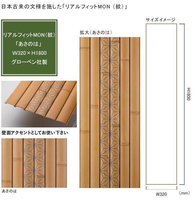 【人工竹素材】リアルフィットMON(紋)「あさのは」(パネル)サイズ:W320×H1800×D10mm、入り数:片面1パネル、品番...
