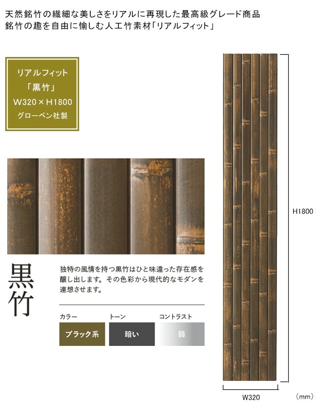 【人工竹素材】リアルフィット「黒竹」(パネル)サイズ:W320×H1800×D10mm、入り数:片面1パネル、品番:A30RF63...