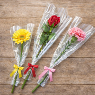 1輪ブーケラッピングキット(透明袋+リボン)※花材は付属しません。