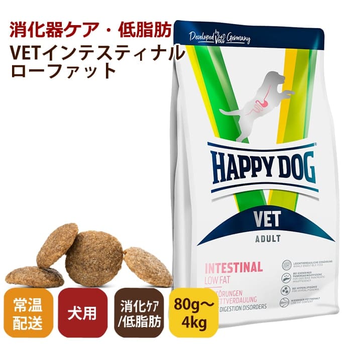 ハッピードッグ療法食|愛犬用 VETインテスティナルローファット(消化ケア/低脂肪) 80g / 1kg / 4kg 膵炎・高...