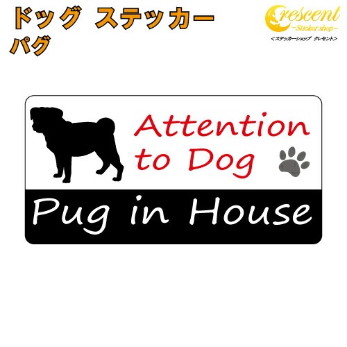 パグ イン ハウス ステッカー 【犬 dog in house ドッグ シール 防犯 pug】【文字変更可】