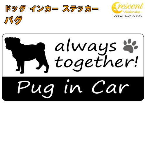 パグ pug in Car ステッカー プリントタイプ 【dog in car ドッグ インカー 犬 シール デカール】【文字変更...