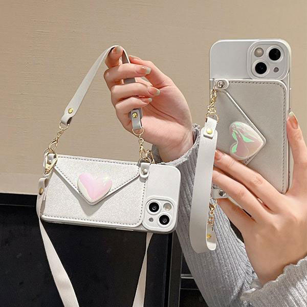ハート スマホカバー iPhone 14 Plus Pro Max カバーショルダー ストラップ付き リストストラップ付き カード...