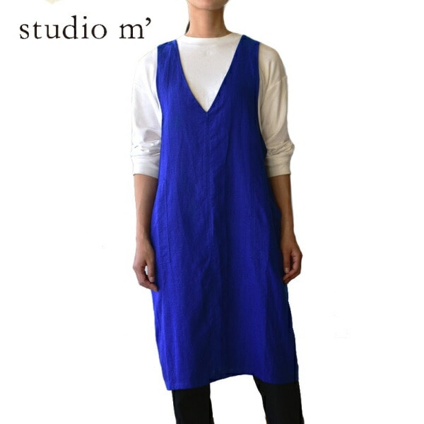 スタジオエム(スタジオM) エプロン イゾラ マーレ ブルー Vネックプルオーバーエプロン ロング STUDIO M\'(スタジオ...