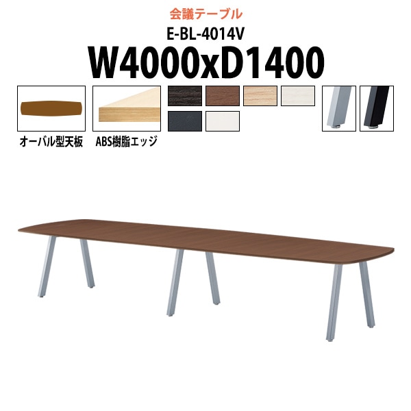 会議用テーブル ミーティングテーブル 12人 E-BL-4014V サイズ 幅4000x奥行1400x高さ720mm オーバル型 ...