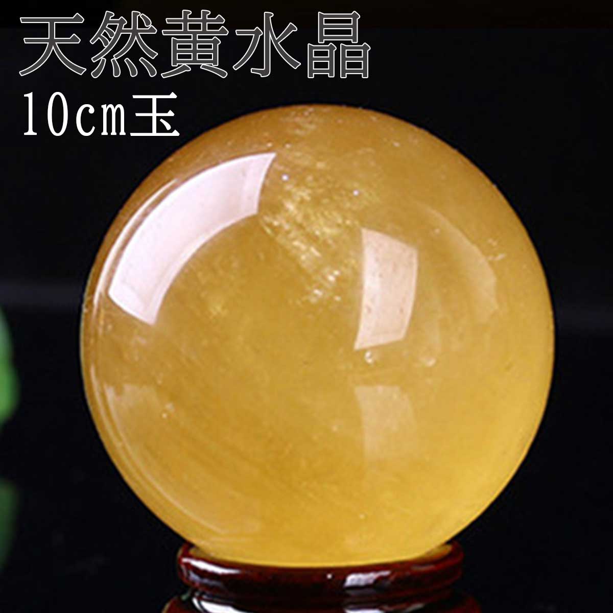 天然黄水晶 丸玉(ブラジル産)10cm 台座付き|シトリン・イエロークォーツ・レモンクォーツ 原石磨き