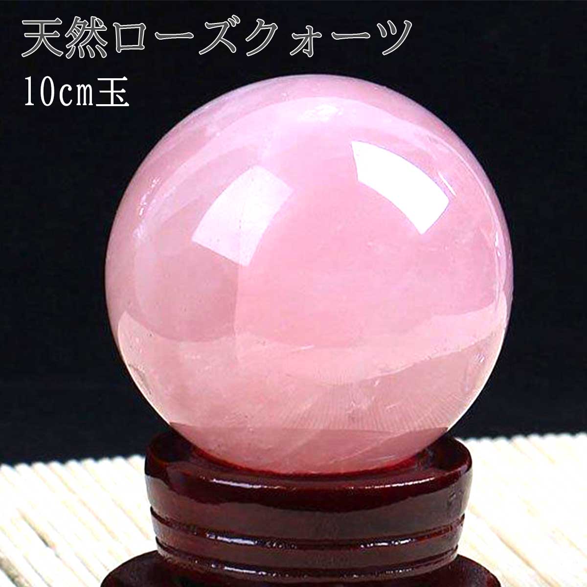 天然ローズクォーツ 丸玉(ブラジル産)10cm 台座付き|ピンククォーツ