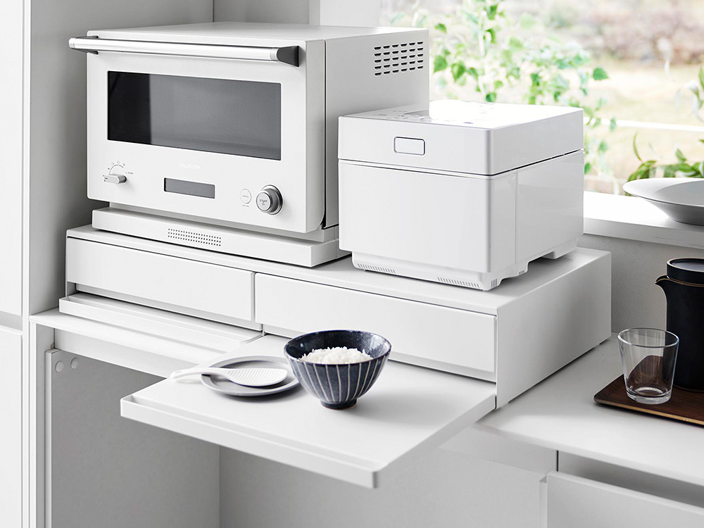 【tower/タワー】ツーウェイ キッチン家電下引き出し&スライドテーブル シングル ホワイト