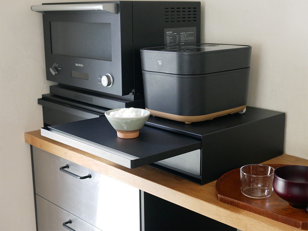 【tower/タワー】ツーウェイ キッチン家電下引き出し&スライドテーブル シングル ブラック