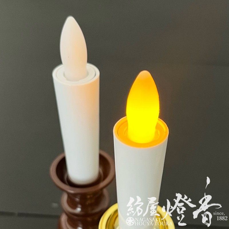 安心ろうそく/仏具『ゆらめく灯り【カメヤマ電池ローソク・茶(ブラウン)】プラ箱[暖色系LED]』カメヤマローソク