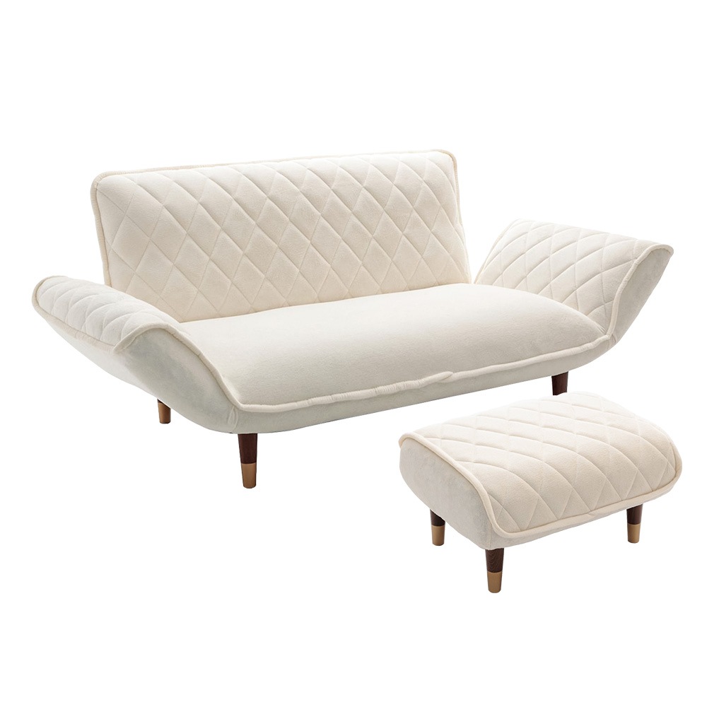 大人かわいい ダイヤモンドキルトカウチソファ オットマンセット 【Chammy -チャミー-】 SH-07-OKDK2P-S-WH...