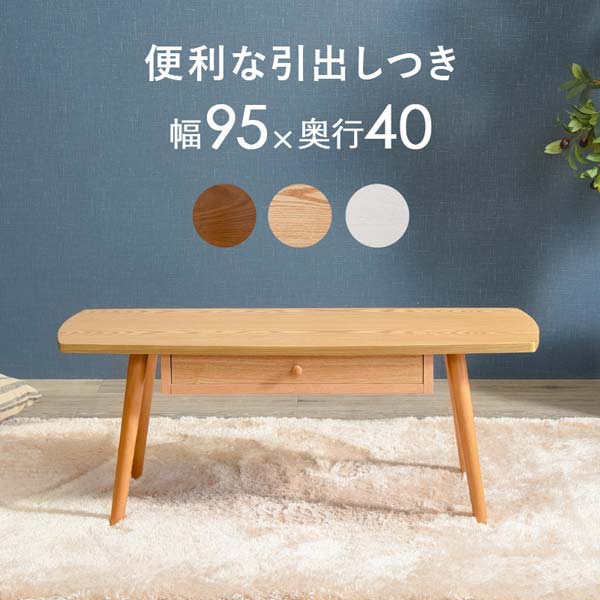 引き出し ローテーブル おしゃれ 木製 北欧 長方形 95cm