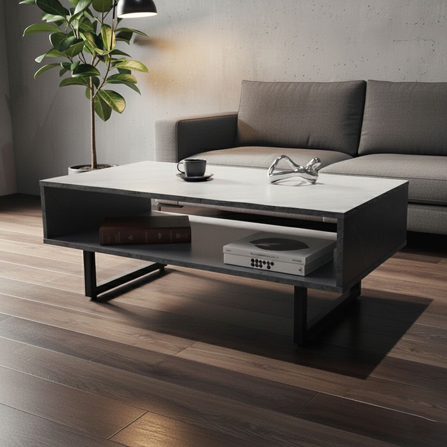 コンクリート調 センターテーブル 横幅90cm 奥行45cm 高さ36cm|収納スペース付き ローテーブル・無機質インテリア・モダ...