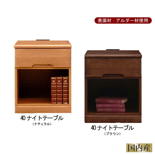 ナイトテーブル 幅40 引出し1段 サイドテーブル コンセント付き アルダー材 ナチュラル ブラウン 完成品 日本製 大川家具