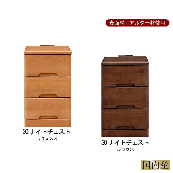 ナイトチェスト 幅30 引出し3段 ナイトテーブル サイドテーブル コンセント付き アルダー材 ナチュラル ブラウン 完成品 ...