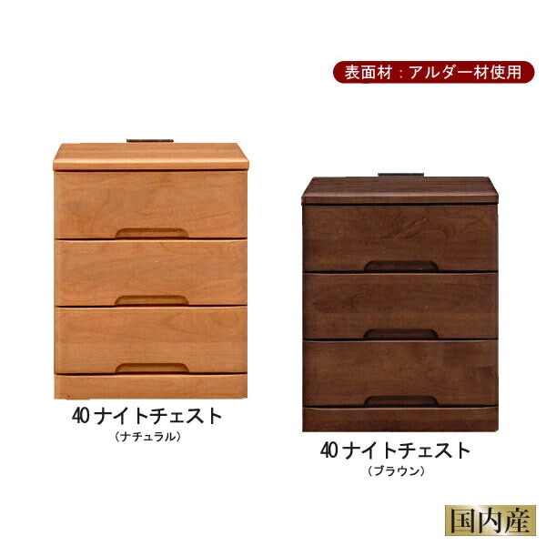 ナイトチェスト 幅40 引出し3段 ナイトテーブル サイドテーブル コンセント付き アルダー材 ナチュラル ブラウン 完成品 日...