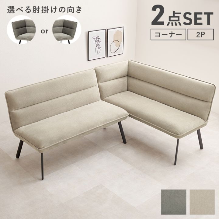 ダイニングソファ2点セット(右肘) ダイニングチェア おしゃれ 北欧 コーナー