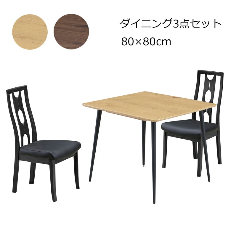ダイニング3点セット 2人掛け ダイニングテーブル 幅80×80cm 正方形 ダイニングセットオーク突板 ナチュラル/ブラウン ...
