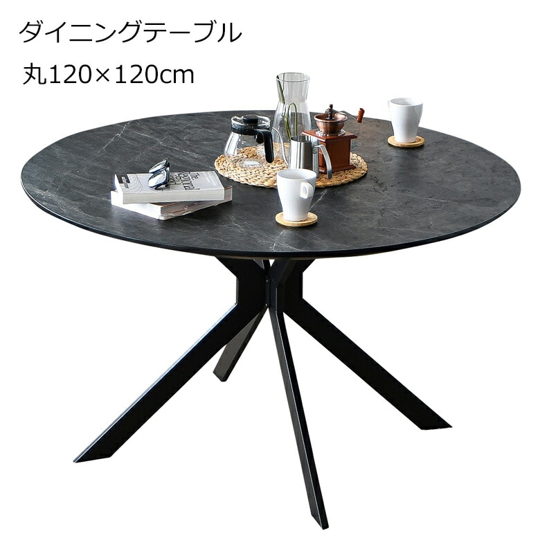 幅120cm 円型 丸型 テーブル単品 メラミンテーブル アイアン脚 石目調 大理石風 ダークグレー ブラック ホワイト まるい ...