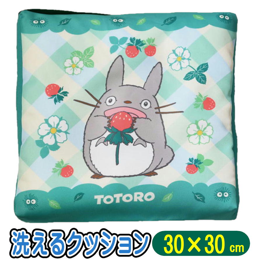 スクールクッション となりのトトロ 苺に囲まれて スタジオ グッズ キャラクター 洗えるカバー 学童 クッション 丸眞 30×30...