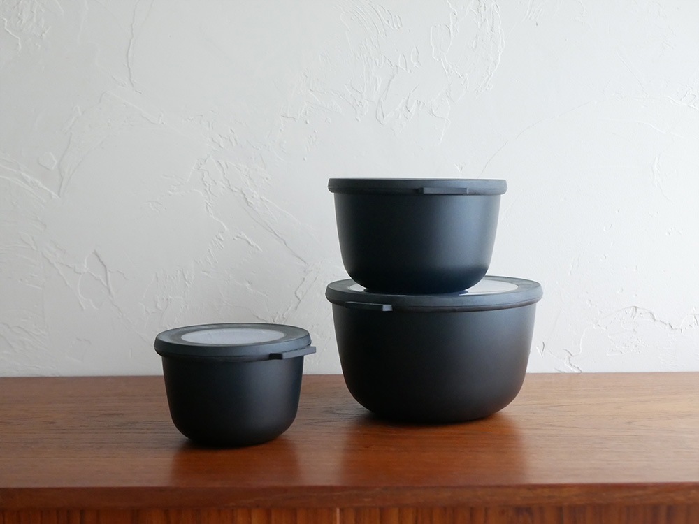 【MEPAL/メパル】汁漏れしにくいマルチ保存容器 サーキュラ 3ピースセット(深型)丸型 ブラック