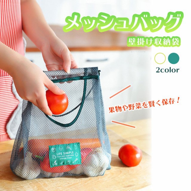 【即納】日用品 壁掛け収納袋 メッシュバッグ ネットバッグ キッチン 野菜保存袋 果物保存袋 大容量 エコバッグ 水洗い可能 頑丈...