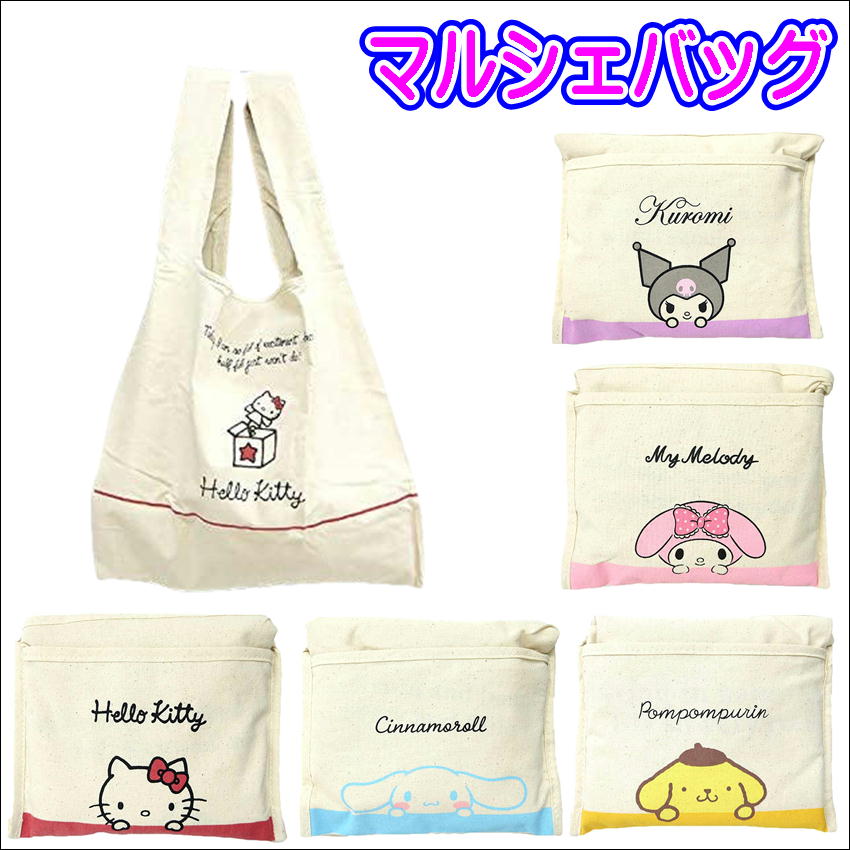 サンリオキャラクター マルシェバッグ コンパクト収納エコバッグ ショッピングバッグ お買い物バッグ キティ/マイメロ/クロミ/シナ...