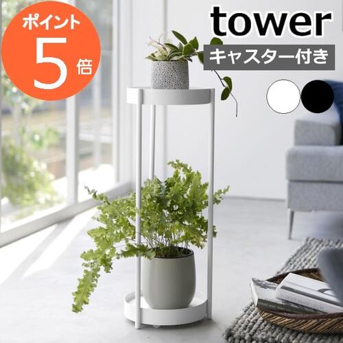 山崎実業 『 キャスター付きプランタースタンド タワー 2段 』 tower フラワースタンド 園芸ラック ガーデンラック 鉢台 ...
