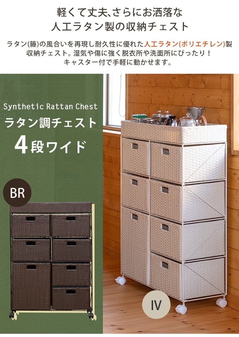 ラタン調 チェスト 4段ワイド TME-10-IV アイボリー