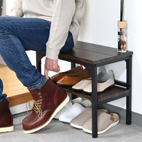 玄関ベンチ 棚付き 木製 収納 スリム 幅60cm おしゃれ シューズラック アウトレット家具