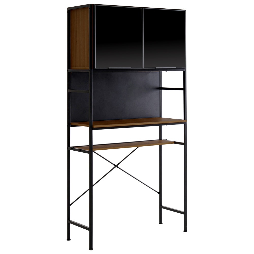 ヴィンテージ調マグネット食器棚 ブラックガラス【GREACK-グリック-】 MGK-1890-WAL ウォールナット