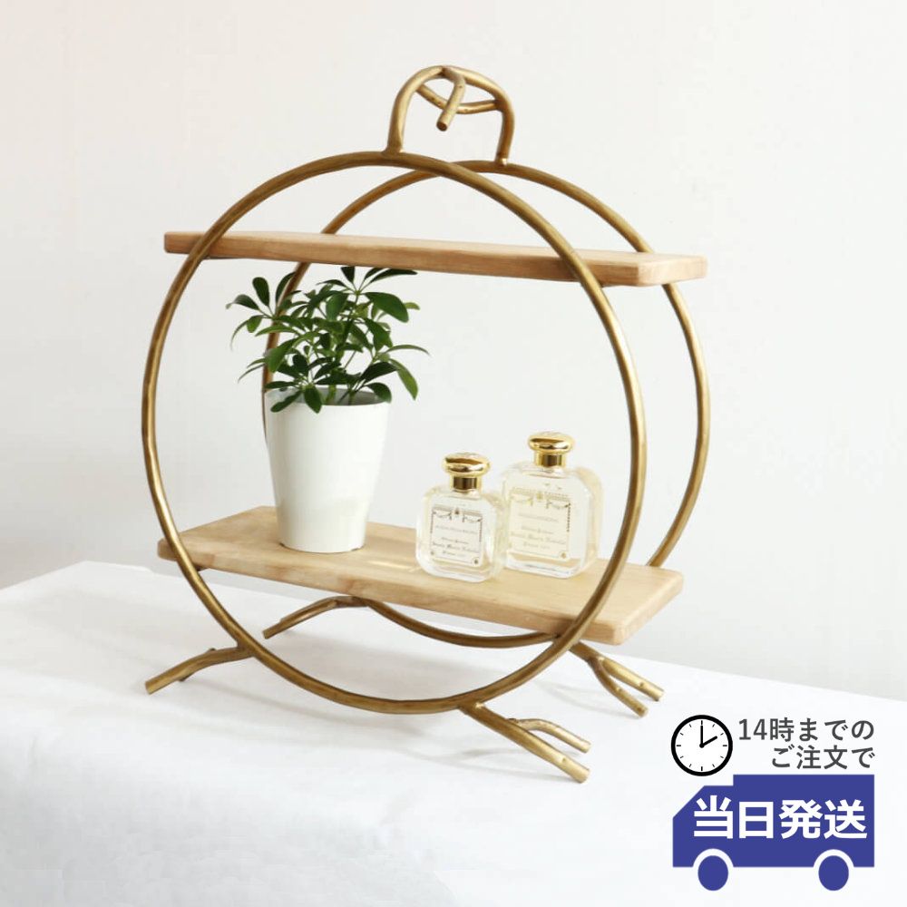 ディスプレイシェルフ アイアン&ウッド 2段 軽量 棚幅36.5cm|おしゃれなインテリアの輸入雑貨イエ【公式通販】