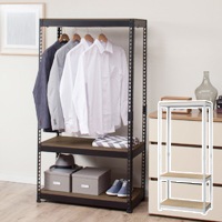 メタル&ウッドラックシリーズ ハンガーバー付きシェルフ3段(幅810mm)