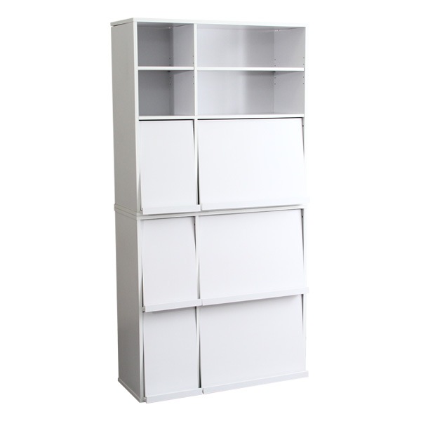 魅せて隠す収納!ディスプレイラック2個セット(本棚・リビング収納) GR-FR-2P-WH ホワイト