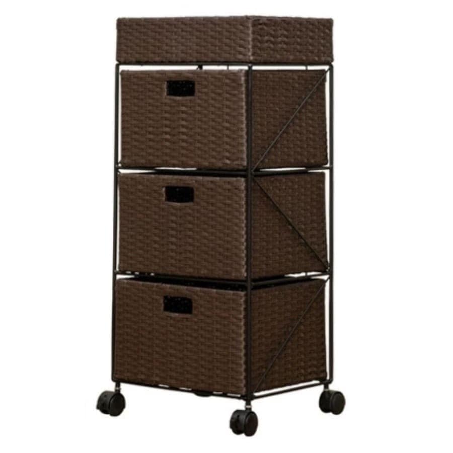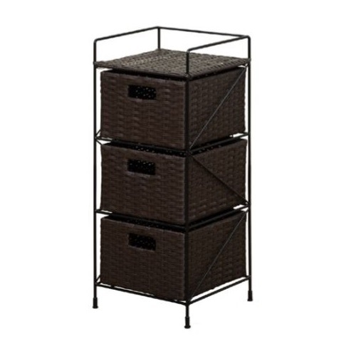 ラタン調 収納ラック 3段 TME-02-BR ブラウン
