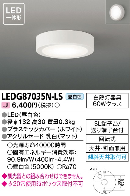 (10個セット)LED小形シーリングライト(LED一体形) 昼白色 TOSHIBA(東芝ライテック) LEDG87035N-LS