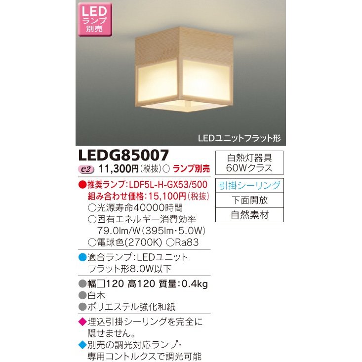 LED小形シーリングライト(ランプ別売) TOSHIBA(東芝ライテック) LEDG85007 ■