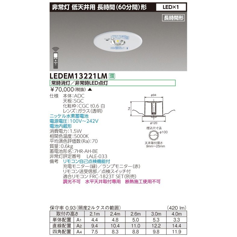 東芝ライテック LED非常灯 LEDEM13221LM ■