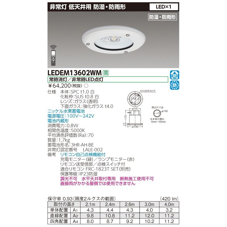 東芝ライテック LED非常灯 LEDEM13602WM ■