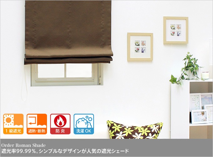 【幕体のみ】遮光率99.99% 1級遮光防炎 ローマンシェード 無地(ブラウン)【買い替え用】
