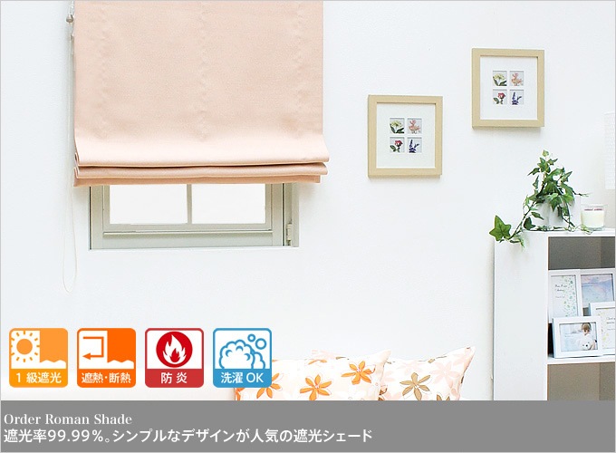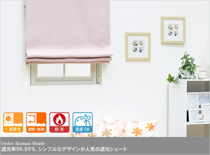 【幕体のみ】遮光率99.99% 1級遮光防炎 ローマンシェード 無地(ピンク)【買い替え用】