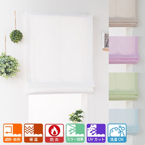 【幕体のみ】エアコン効率アップ! 無地の防炎 省エネミラーレース ローマンシェード【買い替え用】