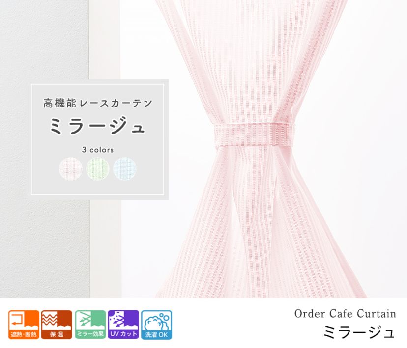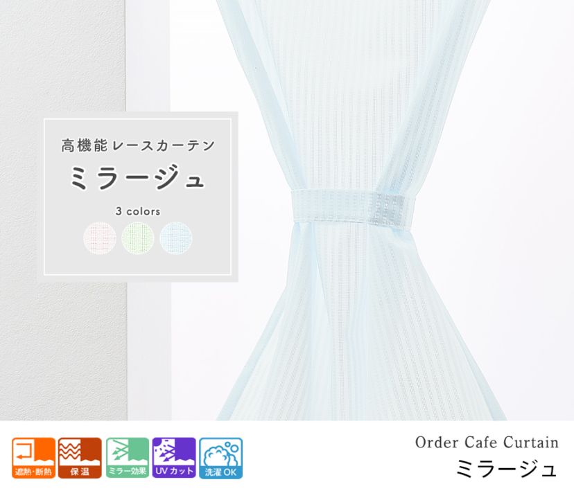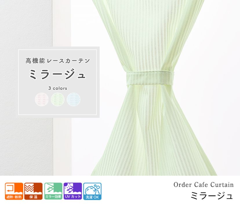 小窓用オーダーカーテン/花粉キャッチャー/花粉をキャッチするレースカフェカーテン「エフコット」
