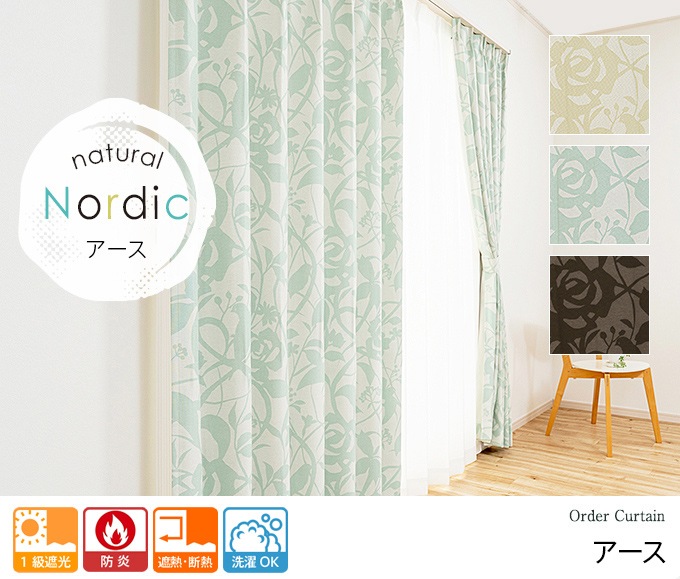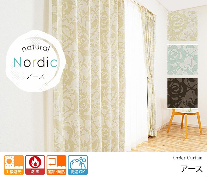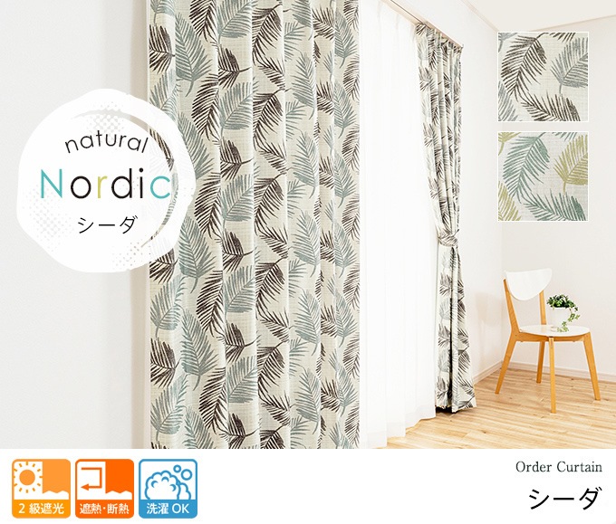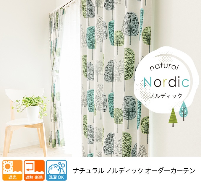 ナチュラル ノルディック フォレスト オーダーカーテン/2級遮光 遮熱・断熱 洗濯OK 日本製