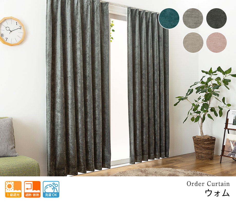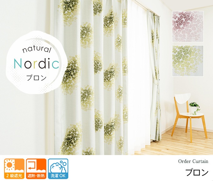 ナチュラル ノルディック ブロン(グリーン) オーダーカーテン/2級遮光 遮熱・断熱 洗濯OK 日本製