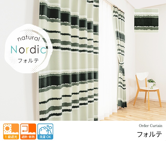 ナチュラル ノルディック フォルテ(ブラック) オーダーカーテン/1級遮光 遮熱・断熱 洗濯OK 日本製