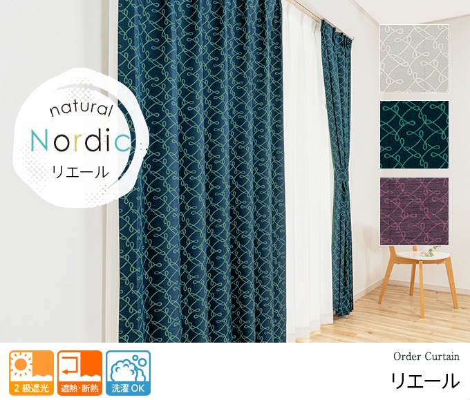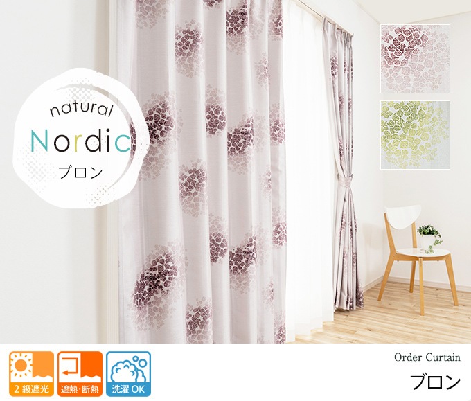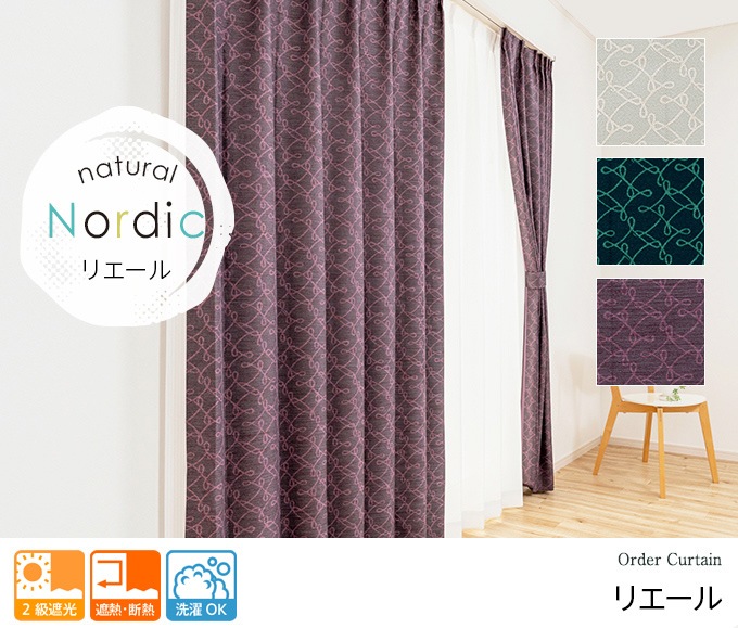 ナチュラル ノルディック リエール(パープル) オーダーカーテン/2級遮光 遮熱・断熱 洗濯OK 日本製